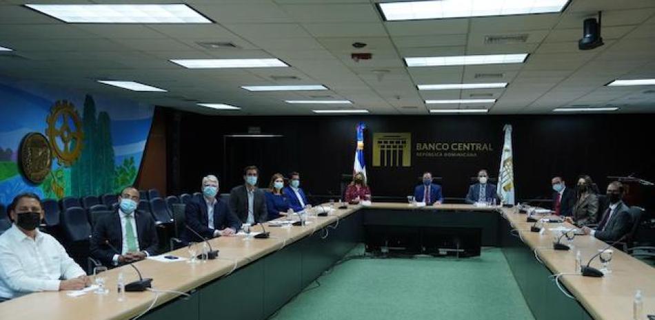 El gobernador del Banco Central, He´ctor Valdez Albizu, acompan~ado por la vicegobernadora Clarissa de la Rocha de Torres y el gerente Ervin Novas Bello, agradecio´ a la ESQR la concesio´n de este premio y al ministro consejo Castro por recibirlo en representacio´n del BCRD.