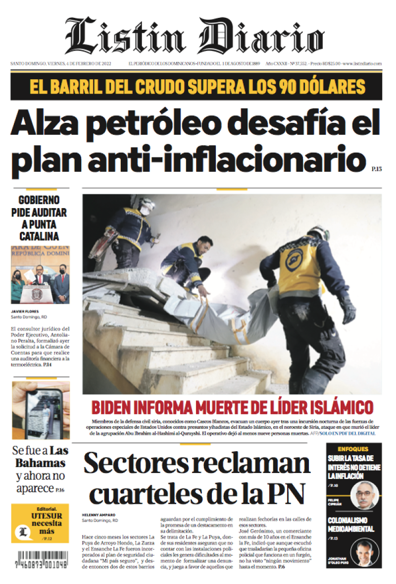 Listín Diario 04-02-2022 Facebook Twitter Whatsapp Comentarios Listín DiarioSanto Domingo 04/02/2022 04:00 | Actualizado a 04/02/2022 04:00 Listín Diario info@listindiario.com Tags relacionados Listin Diario Edición impresa