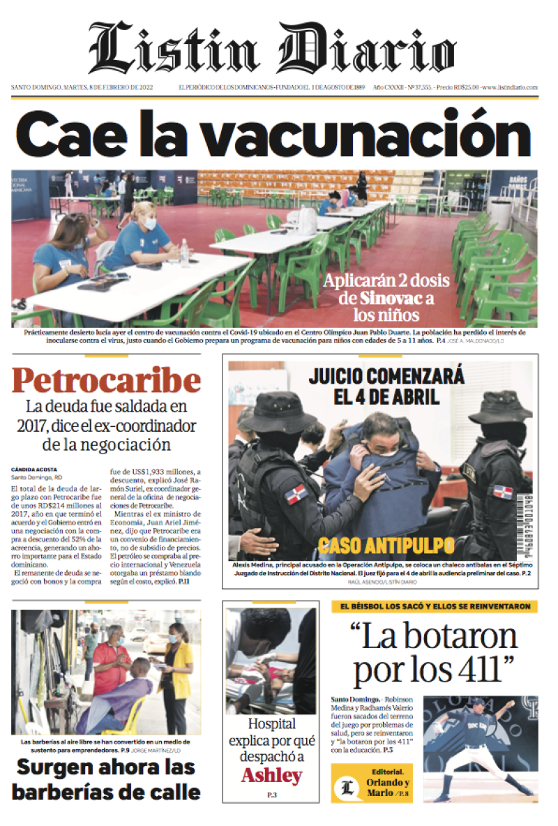 Listín Diario 08-02-2022 Facebook Twitter Whatsapp Comentarios Listín DiarioSanto Domingo 08/02/2022 04:00 | Actualizado a 08/02/2022 04:00 Listín Diario info@listindiario.com Tags relacionados Listin Diario Edición impresa