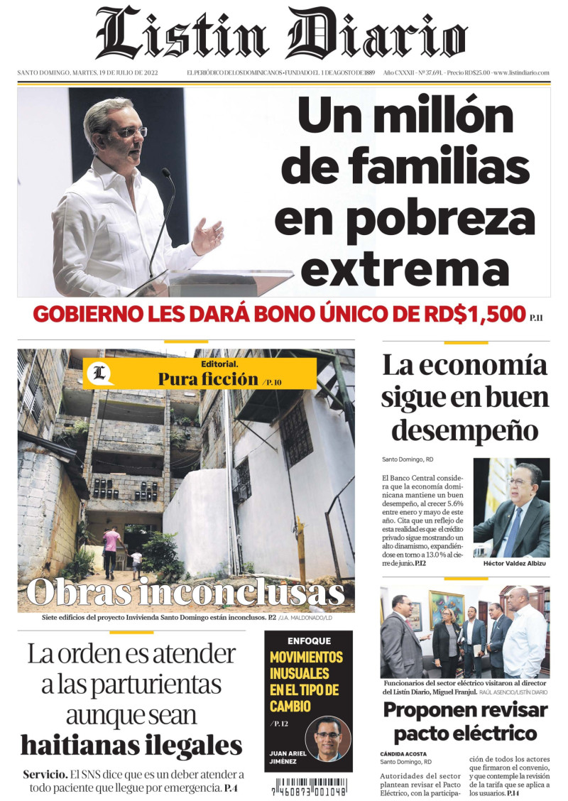 Listín Diario 19-07-2022 Facebook Twitter Whatsapp Comentarios Listín DiarioSanto Domingo 19/07/2022 04:00 | Actualizado a 19/07/2022 04:00 Listín Diario info@listindiario.com Tags relacionados Listin Diario Edición impresa