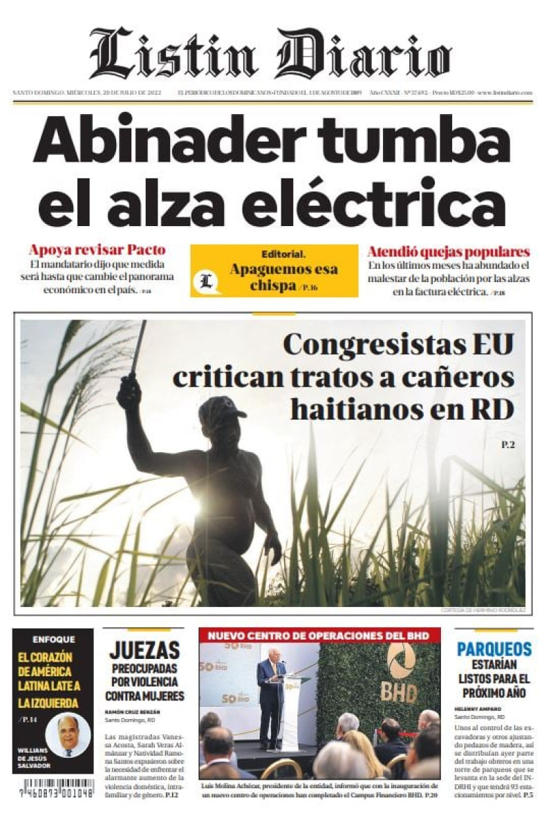 Listín Diario 20-07-2022 Facebook Twitter Whatsapp Comentarios Listín DiarioSanto Domingo 20/07/2022 04:00 | Actualizado a 20/07/2022 04:00 Listín Diario info@listindiario.com Tags relacionados Listin Diario Edición impresa