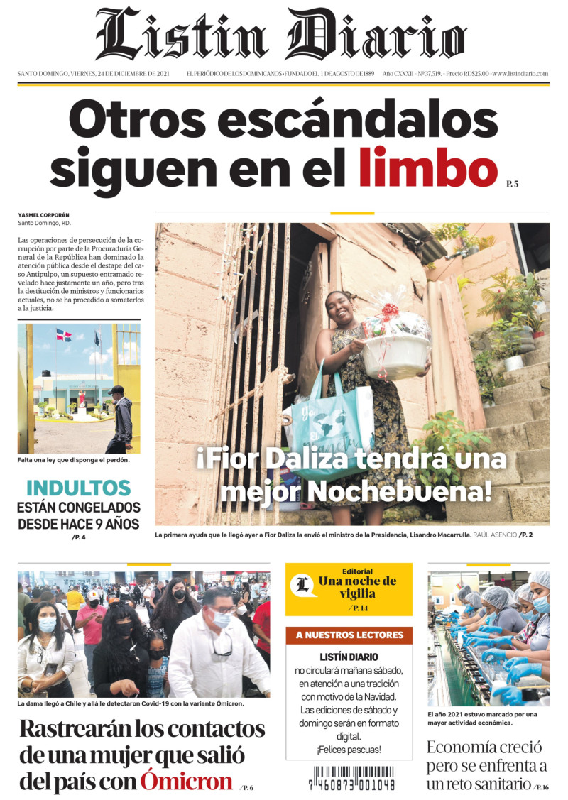Listín Diario 24-12-2021 Facebook Twitter Whatsapp Comentarios Listín DiarioSanto Domingo 24/12/2021 04:00 | Actualizado a 24/12/2021 04:00 Listín Diario info@listindiario.com Tags relacionados Listin Diario Edición impresa