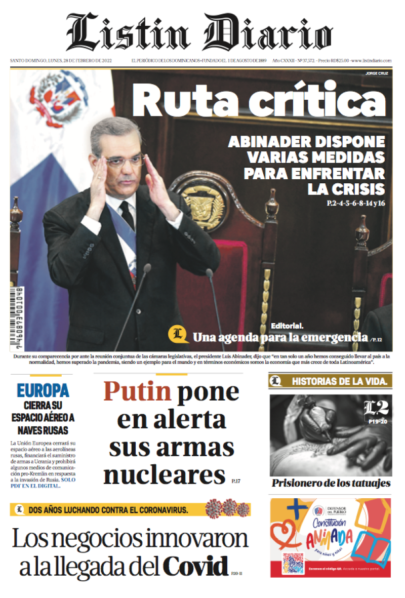 Listín Diario 28-02-2022 Facebook Twitter Whatsapp Comentarios Listín DiarioSanto Domingo 28/02/2022 04:00 | Actualizado a 28/02/2022 04:00 Listín Diario info@listindiario.com Tags relacionados Listin Diario Edición impresa