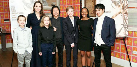 2 Angelina Jolie. La estrella de cine, tiene tres hijos biológicos y tres adoptados. Maddox Chivan, Zahara Marley y Pax Thien, fueron adoptados por la actriz. Sus hijos naturales son: Shiloh Nouvel, Knox Leon y Vivienne Marcheline. Esta familia la formó junto al también actor Brad Pitt.