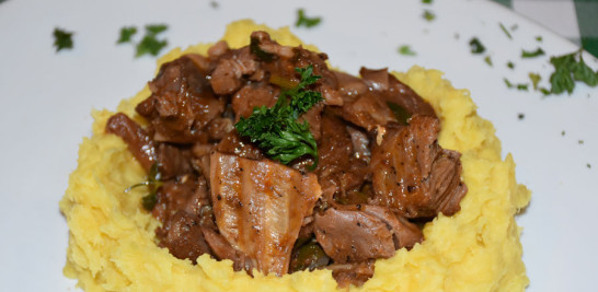 Se hace acompañar de vegetales, arroz blanco y habichuelas rojas guisadas, aunque el cliente puede hacer sus propias combinaciones. Los restaurantes de Constanza presentan una versión diferente, pero el Hotel Restaurante Dilenia es reconocido por ofrecer exclusivamente esta receta familiar.
