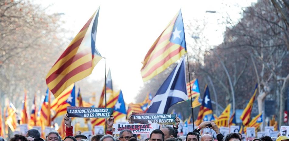 Miles de personas se manifestaron ayer sábado en Barcelona contra el juicio del proceso independentista catalán, que comenzó el martes pasado en el Tribunal Supremo español (TS).